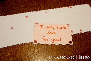 I cut a strip the length of the paper, and a smaller rectangle. I trimmed both with decorative scissors, and wrote “I only have ice for you” on the smaller piece.